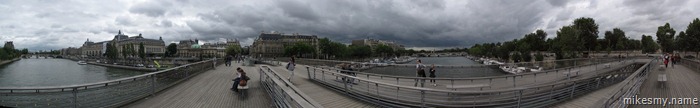 | This is a panorama I took from Passerelle Solferino, a walking bridge over the Seine between D’Orsay and L’Orangerie |